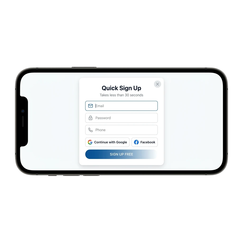 - Choose Your Method: Select any available registration method, such as one-click, phone number, email, or social media, and fill in the required details.